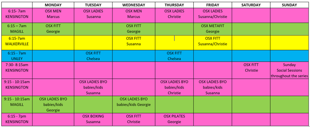 OSX LADIES An early morning, ladies only session incorporating strength, speed, agility, cardio and flexibility. A great session to work on getting stronger, fitter and achieving your personal goals.
